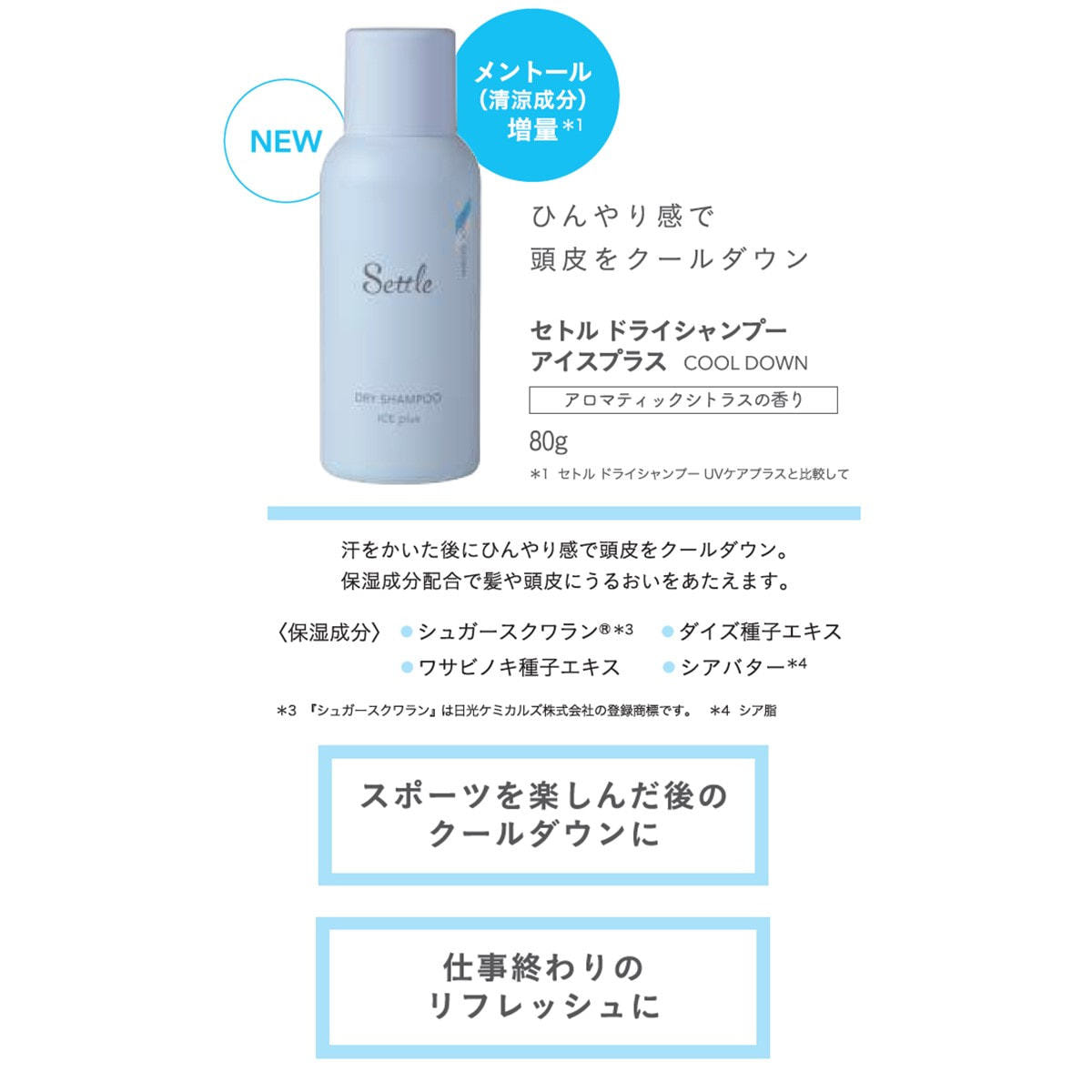 商品番号:0000000000028842 商品コード:184876 商品名:セトル ドライシャンプー アイスプラス 80g お届け目安:2026-03-17